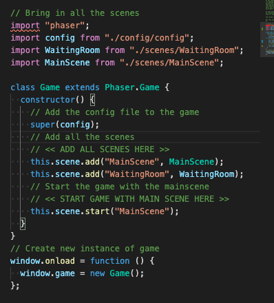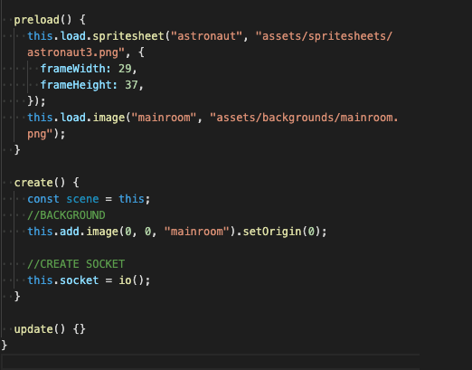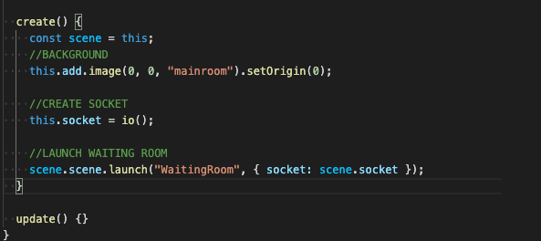You’ll notice that we depend on a scene.otherPlayers group to add the other players at the bottom of our method, add this towards the top of the create function:
