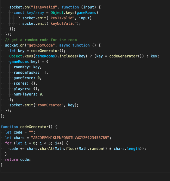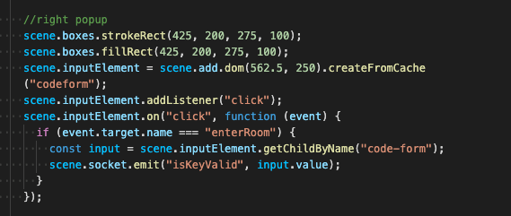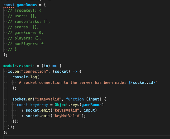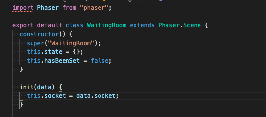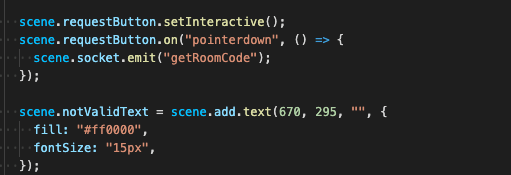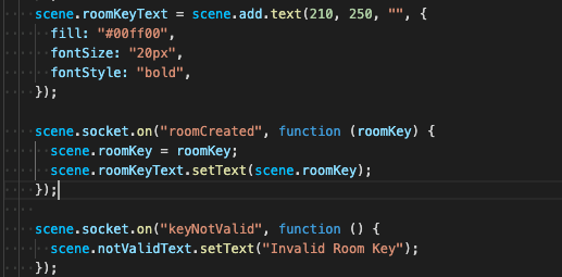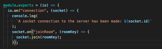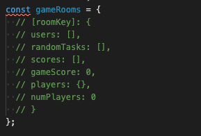 Now that we’ve created the logic for joining our game room, we can implement what needs to happen upon joining. Inside of our ‘joinRoom’ socket listener callback function, let’s add our player to our game room object in the server state: